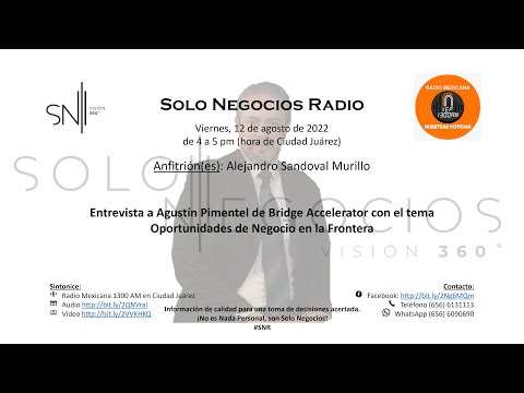 Entrevista: Agustín Pimentel de Bridge Accelerator con el tema Oportunidades de Negocio en la Frontera (dura 1 hora).